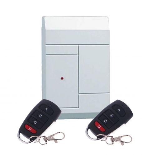 Комплект RR-1 состоит из приемника RR-1R и двух носимых радиоканальных двухкнопочных брелков RFG-1.